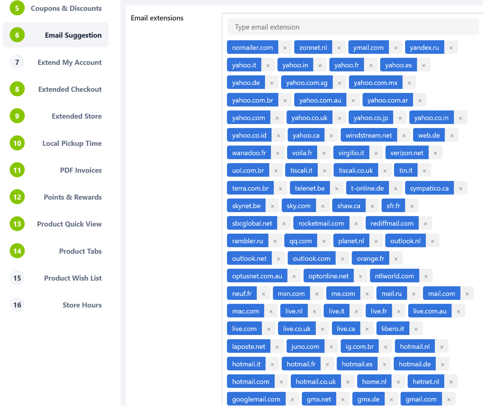 Tired of customers filling in incorrect e-mails that may cause issues and shipment delays? The Email Suggestions addon takes care of this issue automatically. Receiving an incorrect e-mail address can solve you hundreds of unnecessary e-mails and phone calls. Eventually; increasing customer satisfaction scores.
