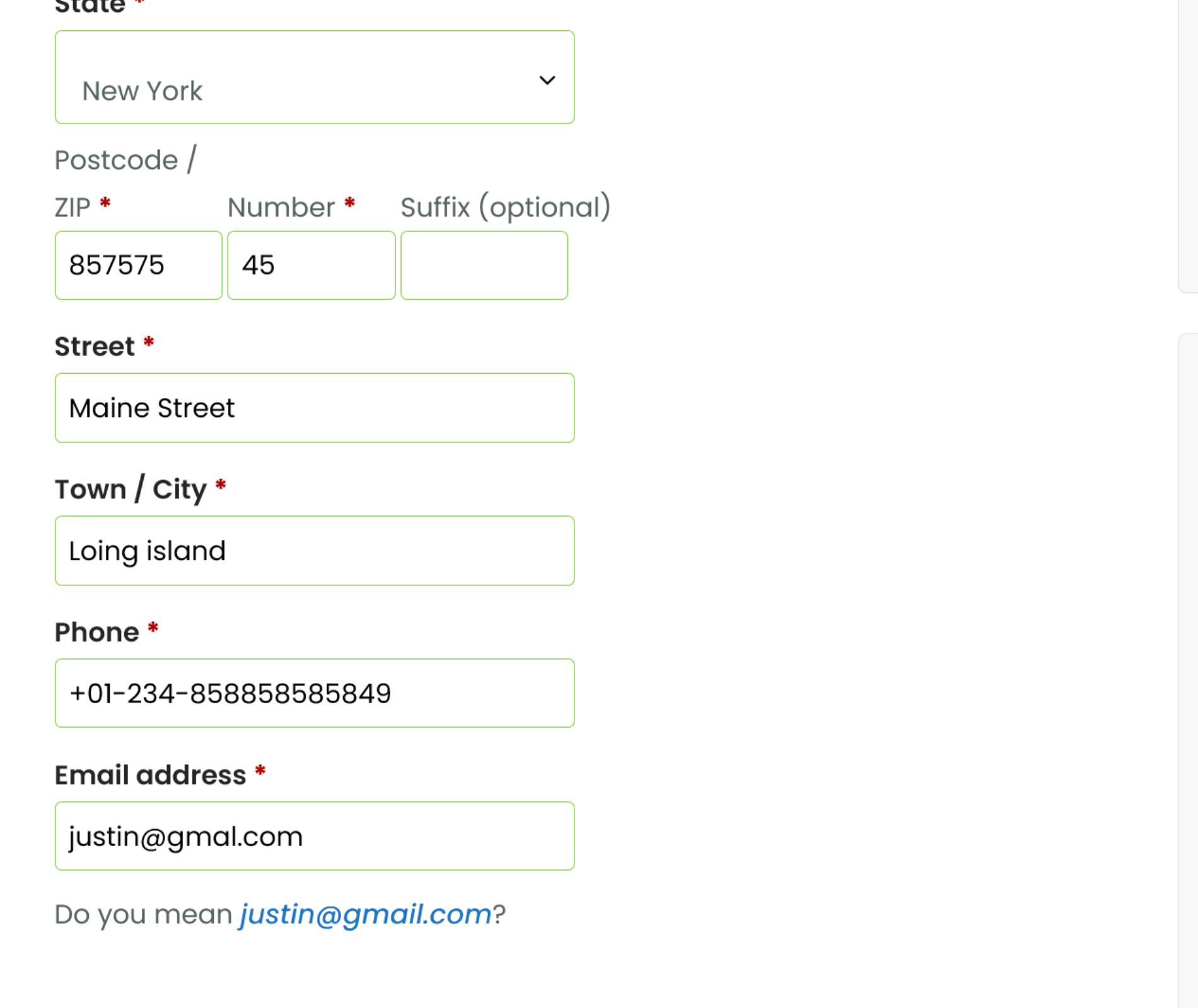Auto-correction tools can detect and suggest the correct domain or format before the form is submitted. Many users accidentally mistype their email addresses during checkout — for example: