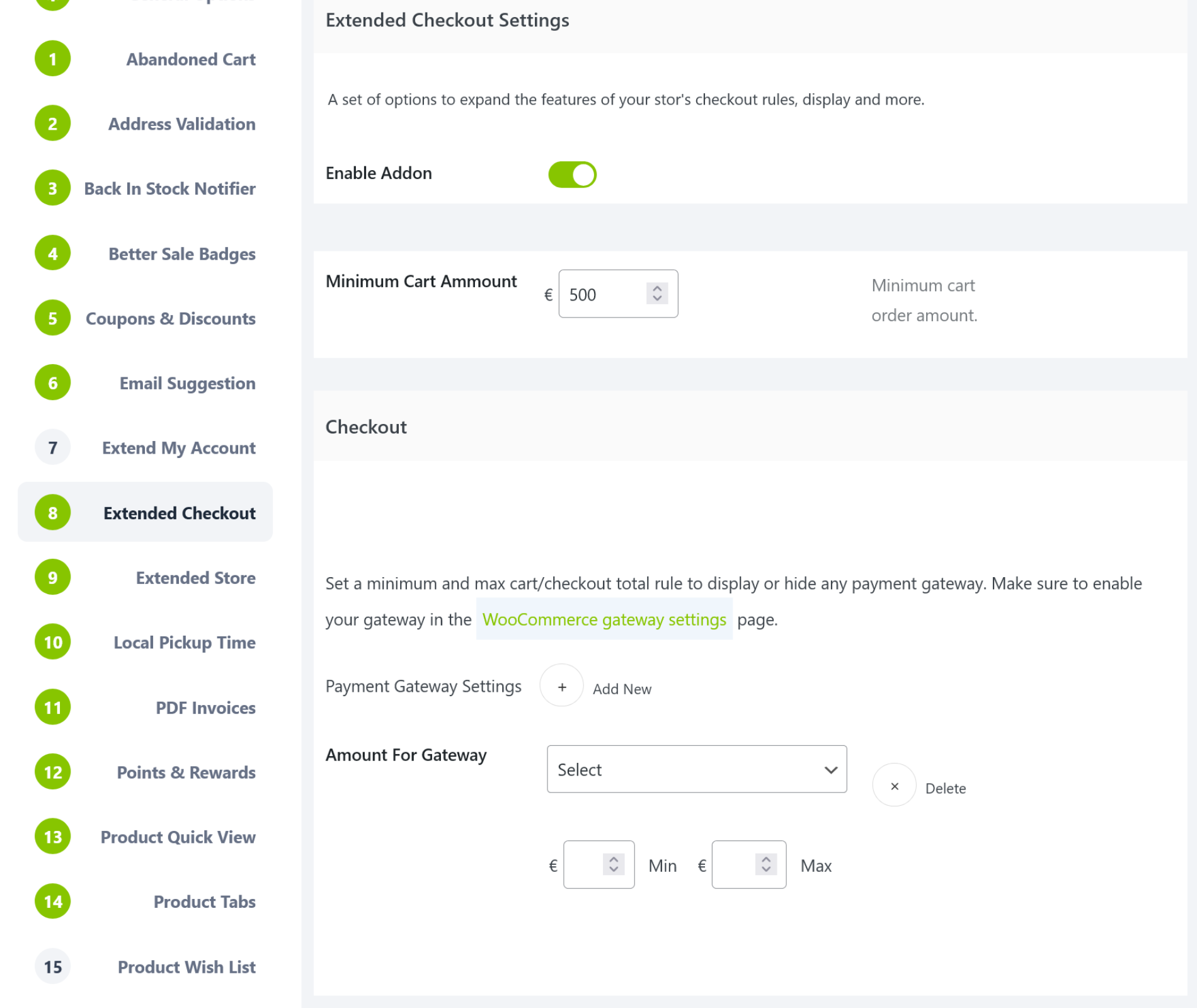 • Set a minimum checkout amount